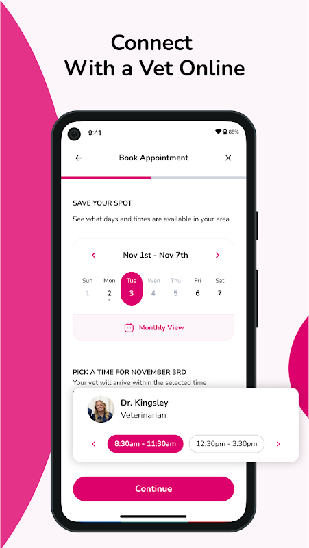 در BetterVet، هر حیوان خانگی یک VIP است. به همین دلیل است که دامپزشکان سیار ما از حیوانات خانگی در مکان مورد علاقه خود - در خانه - بازدید می کنند! با برنامه راحت خود، والدین حیوانات خانگی را قادر میسازیم تا تنها با چند ضربه سریع و آسان به منابع دامپزشکی و مراقبتهای خانگی دسترسی پیدا کنند.