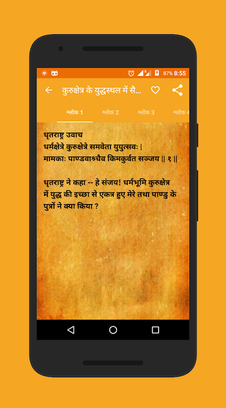• همه 700 سانسکریت Shlokas با هندی ترجمه و شرح