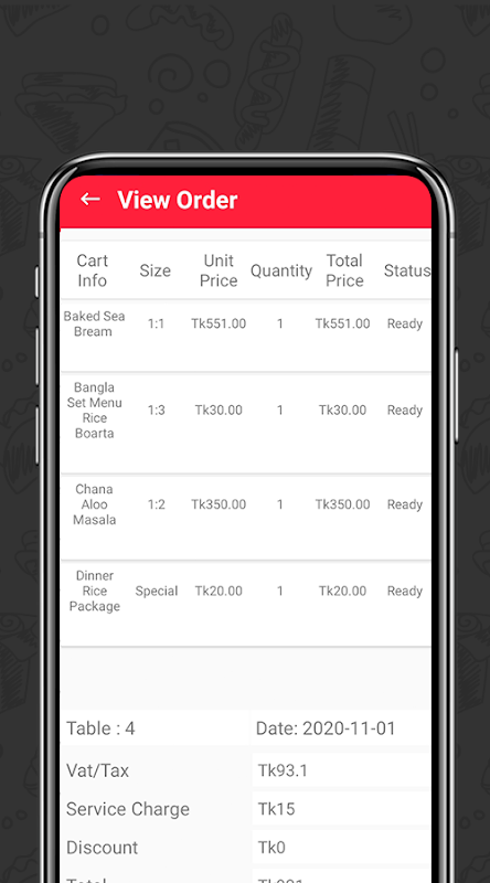 ویژگی های برنامه Bhojon - Waiters