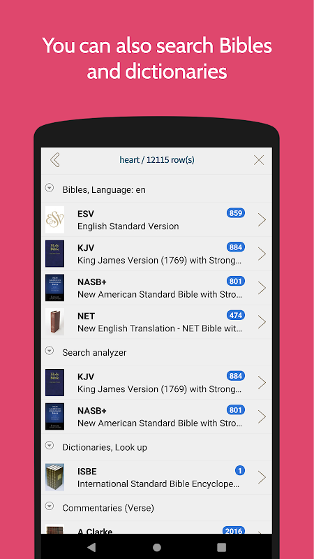 پس از دانلود نرم افزار بیش از 150 ترجمه کتاب مقدس و 40 فرهنگ لغت می تواند به شما در مطالعه کلمه کمک کند.