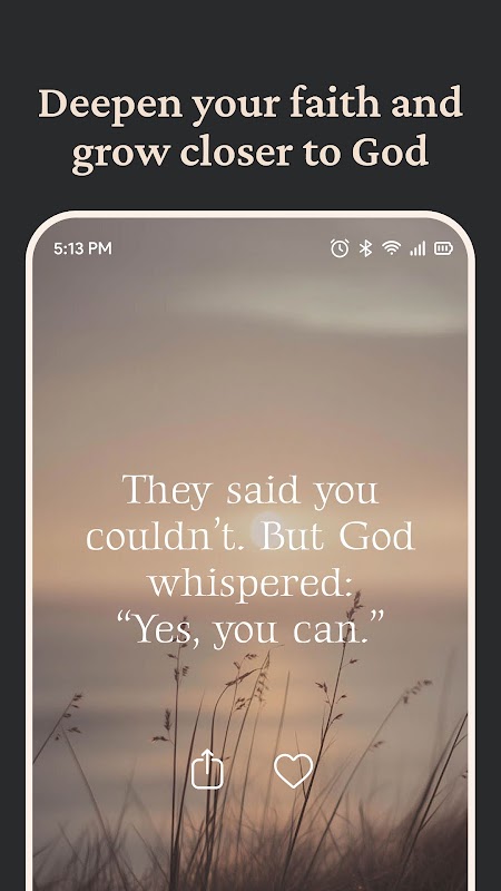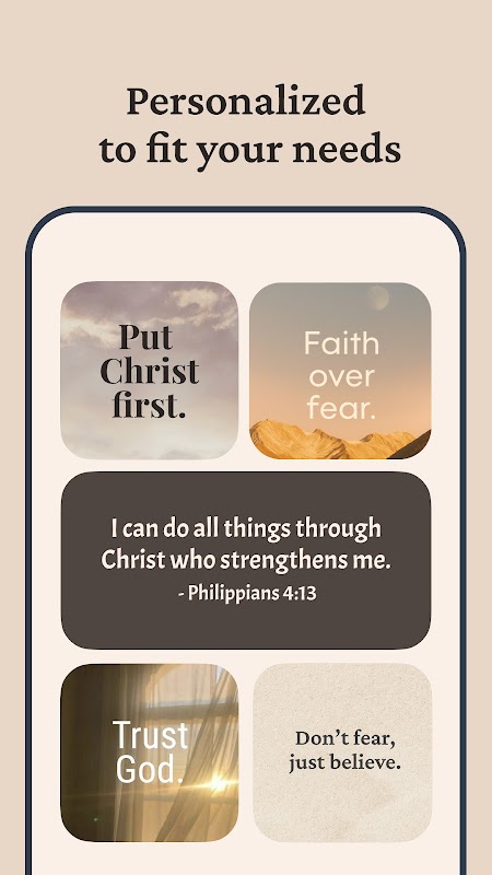 با طراحی زیبا و ابزارکهای کاملاً قابل تنظیم، میتوانید هر روز صبح با یک آیه جدید کتاب مقدس از خواب بیدار شوید، در طول روز الهام بگیرید و نقل قولهای متفکرانه دریافت کنید، یا هر زمان که نیاز به ارتقای معنوی داشتید برای دعا مکث کنید.