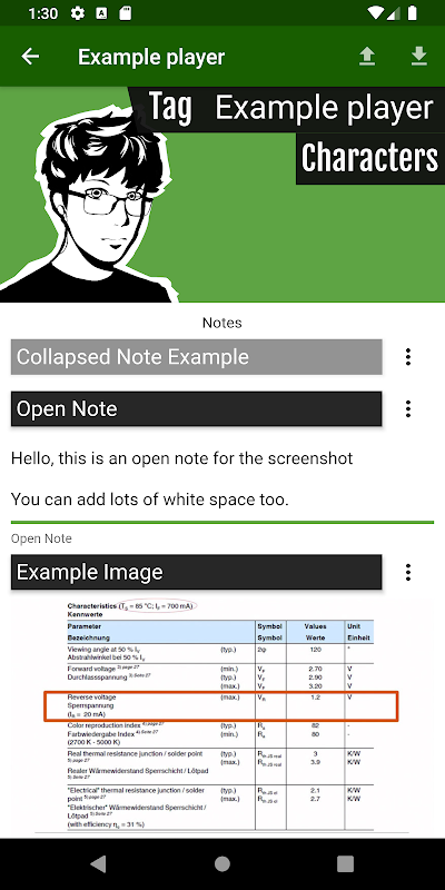 ایجاد بخش هایی در یادداشت های کاراکتر خود را که می تواند به آسانی گسترش یافته و سقوط کند