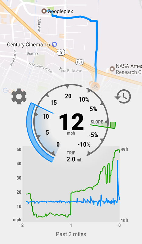* Shows altitude on chart and slope on gauge.