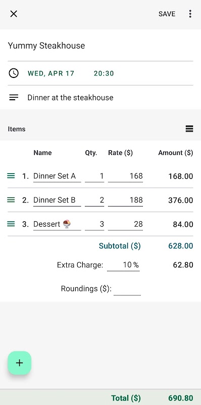 3. هر گونه هزینه اضافی (یا تخفیف - می توانید یک عدد منفی وارد کنید) و گرد کردن را وارد کنید.