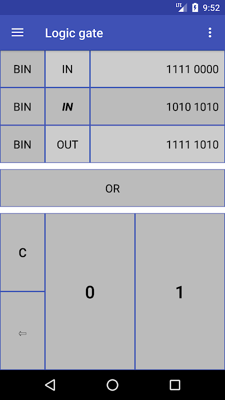• دروازه ها را با شماره های باینری ، اکتالی ، اعشاری و شش ضلعی منطقی کنید. دروازه های منطقی AND ، NAND ، OR ، XOR و NOR هستند. برای هر سیستم عدد از یک صفحه کلید خاص استفاده می شود که استفاده از آن بسیار آسان و سریع است. مقادیر را می توان کپی / چسباند.