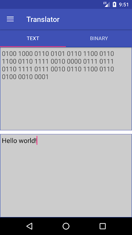 • ترجمه بین اعداد باینری و متن (مطابق جدول Ascii). مقادیر را می توان کپی / چسباند.