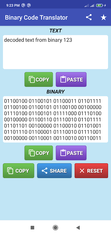 - نتایج خود را به اشتراک بگذارید: به راحتی کد باینری یا تبدیل متن خود را با دوستان و همکاران به اشتراک بگذارید و راحتی را به ارتباطات خود اضافه کنید.
