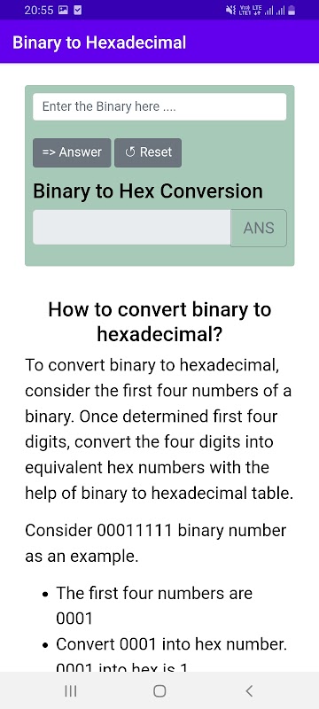 A simple Binary to Hexadecimal conversion app.