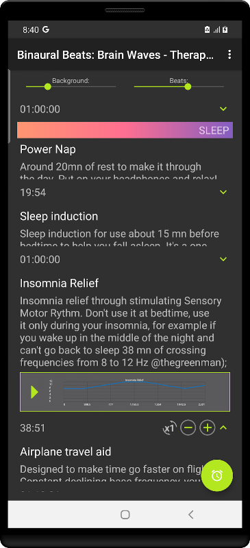 ما انواع مختلفی از پیش تنظیم را ایجاد کرده ایم: خواب ، مراقبه ، تمرکز و توجه ، یادگیری سریع تر ، کاهش درد ، خلاقیت ، کاهش اضطراب.