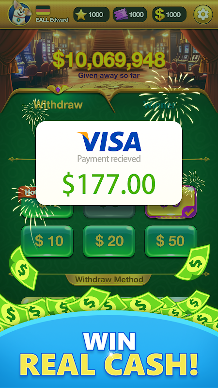 · مهارت دارید؟ پول بگیرید! از طریق گیم پلی منصفانه پول نقد واقعی به دست آورید، سپس درآمد خود را به سرعت و ایمن از طریق روش های محبوب مانند PayPal برداشت کنید. به همین سادگی است!