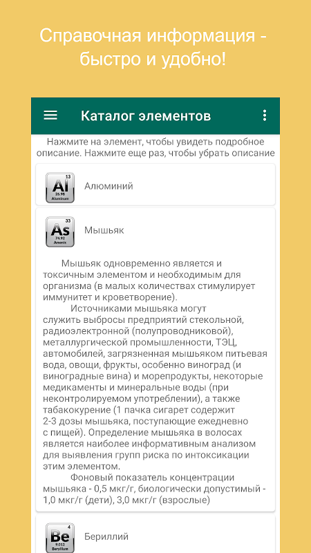 Просматривайте результаты, описания элементов, время записи прямо в приложении.