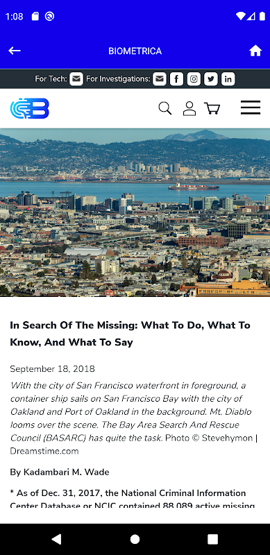 Biometrica ™ Mobile به کاربران امکان دسترسی به وبلاگ ، مقالات خبری و موارد دیگر را می دهد.