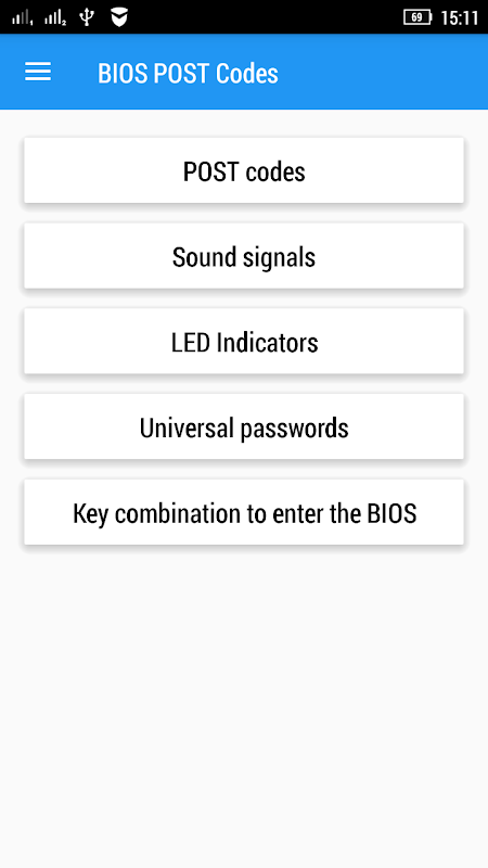 The application "BIOS POST Codes" is a handbook with a user-friendly interface for decoding BIOS error codes of modern motherboards of different manufacturers.