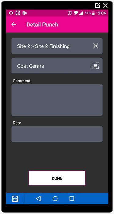 Detail Punch: به کارمند اجازه می دهد تا به مرکز هزینه های مختلف منتقل شود یا ساعات کاری را با کد شغلی مشخص کند. انتخاب را تایپ کنید یا بارکد را اسکن کنید.