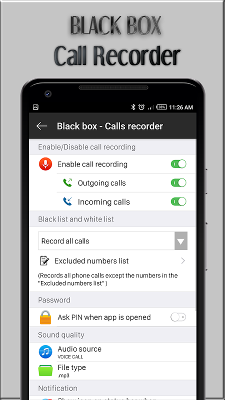 Black box call recorder is a simple, free, smart and easy to use auto call recorder app for all android phones that records phone calls from both sides with high quality and clear voice. It is the best recorder for sound recording with high quality.