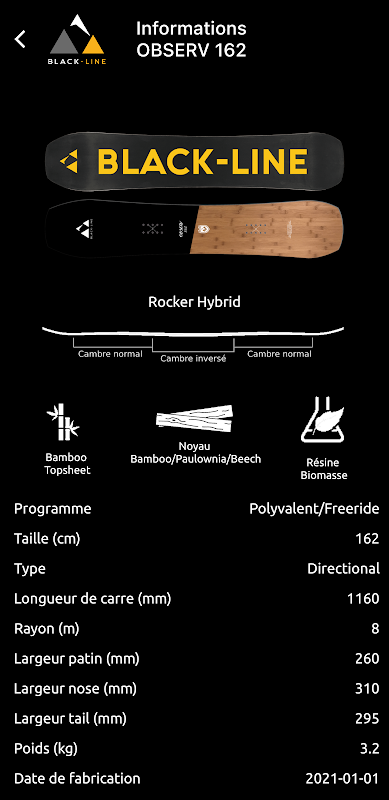 با برنامه Black-Line می توانید برچسب Black-Line تعبیه شده در اسکی یا اسنوبرد خود را اسکن کنید و به این ترتیب به دست آورید: