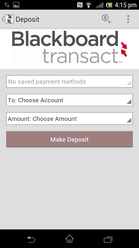 Blackboard Transact Mobile eAccounts application provides quick and easy access to the most popular features of Blackboard Transact eAccounts. Users affiliated with participating institutions can securely manage local campus stored value accounts and ID card status directly through the app. In addition, if enabled, the application can be used as an ID credential to process transactions at NFC capable terminals. Please contact your campus ID card office to verify Bb Transact is supported. A list of campuses currently using Blackboard eAccounts supporting this application is available at http://bbbb.blackboard.com/mobile.