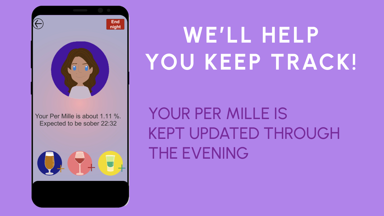 خاموشی به شما کمک می کند مصرف الکل خود را با در هر میلیل (میزان الکل در خون) به روز شده و تنظیم شخصی خود پیگیری کنید. پس از پایان شب، ماجراجوییهای خود را با آمارهایی مانند: زمانی که مشروب خوردهاید، چیزی که نوشیدهاید و بالاترین در هر میلیمتر ذخیره میکنید.
