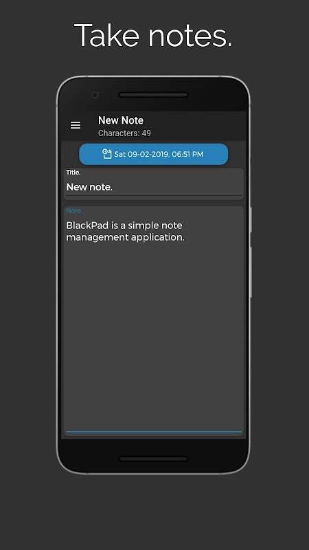 BlackPad Notes is a free and easy to use app for Android. With this Notepad you will be able to follow all your daily activities: from day to day tasks to important projects.