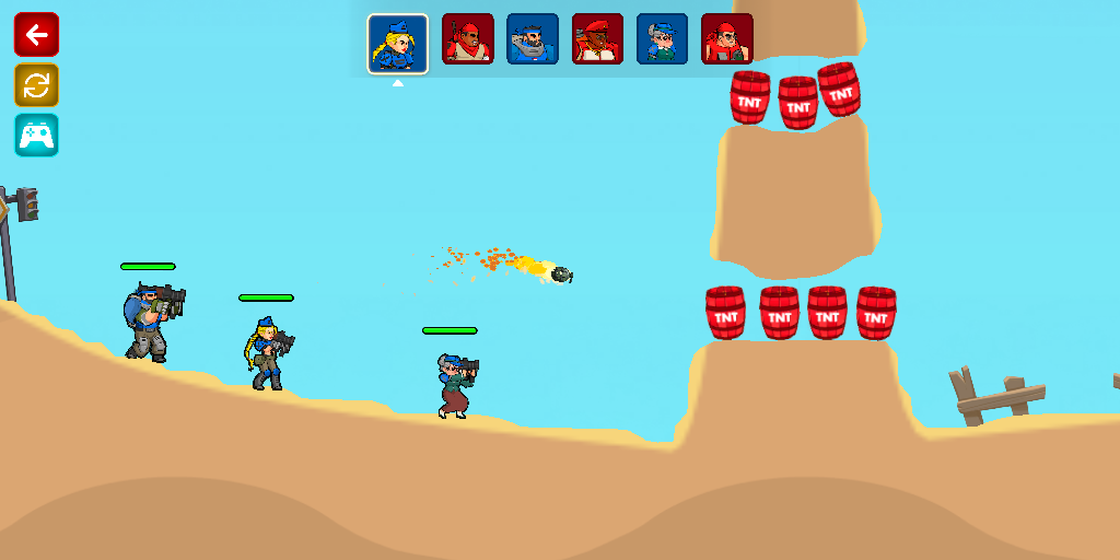 آیا برای یک تجربه تیراندازی دو بعدی اکشن آماده هستید؟ به **تکتیکال جنگ: فرمان انفجار نوبتی**، بهترین بازی توپخانه مبتنی بر جوخه خوش آمدید! کنترل یک تیم نخبه از سربازان را در دست بگیرید، زاویه تیراندازی عالی را پیدا کنید و نیروهای دشمن را با باران تخریب کنید. سریع هدف بگیرید، هوشمندانه شلیک کنید و بر میدان جنگ تسلط داشته باشید!