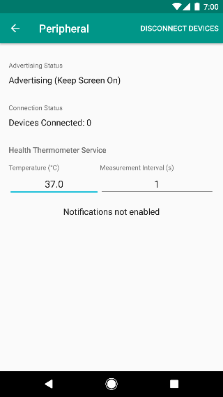 توسعه دهندگان می توانند از این برنامه برای شبیه سازی یک BLE محیطی با یکی از سه خدمات استفاده کنید: