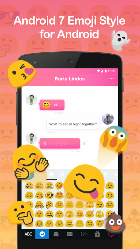 Blob Emoji for Android 7 is totally free and customed for Emoji Keyboard(with 1000+ colorful themes and 3800+ emoji, emoticons and smiley faces)!