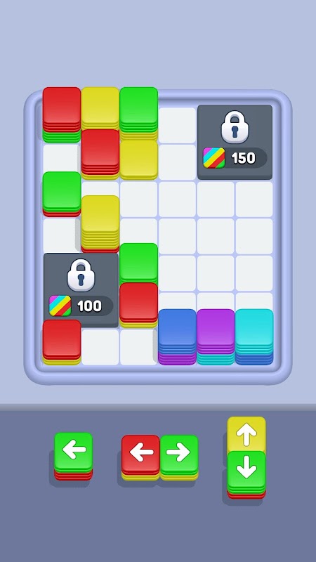 حرکت بلوک ها: از فلش های جهت دار روی بلوک ها برای هدایت آنها به داخل تخته استفاده کنید. هر بلوک در جهت فلش خود حرکت می کند تا زمانی که به بلوک دیگری یا لبه تخته برخورد کند.