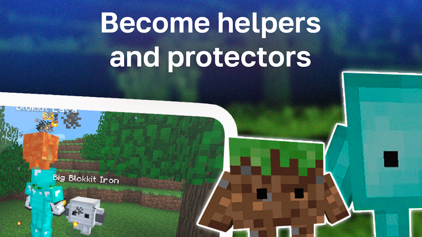مد Blokkit برای Minecraft pe – این افزونه بلوکهای Minecraft زنده را به Minecraft Pocket Edition اضافه میکند - blockkit که به کمک، مدافع و همراه شما تبدیل میشود. اینها حیوانات خانگی یا حیوانات بلوکی هستند که می توانید آنها را اهلی کنید تا آنها به دنبال شما دویده و در بستر mcpe به شما کمک کنند. رام کردن این NPC در فاصله نزدیک و با کمک ساخت غذا انجام می شود. بعد از اینکه این بلوک اوباش به حیوان خانگی شما تبدیل شد، می توانید به او وظایفی بدهید و چیزهایی را در فهرست موجودی او قرار دهید.