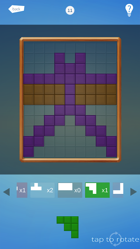 هر سطح شما باید کل جدول بازی با بلوک کامل است. برخی از نقاط هستند از سمت راست شروع با بلوک های که می تواند منتقل تواند تکمیل شود. بقیه اشکال را می توان کشیده، چرخش و قرار داده شده هر کجا که می به منظور پر کردن تمام فضای رایگان می خواهید. راه حل خود را مانند یک متخصص ساخت.