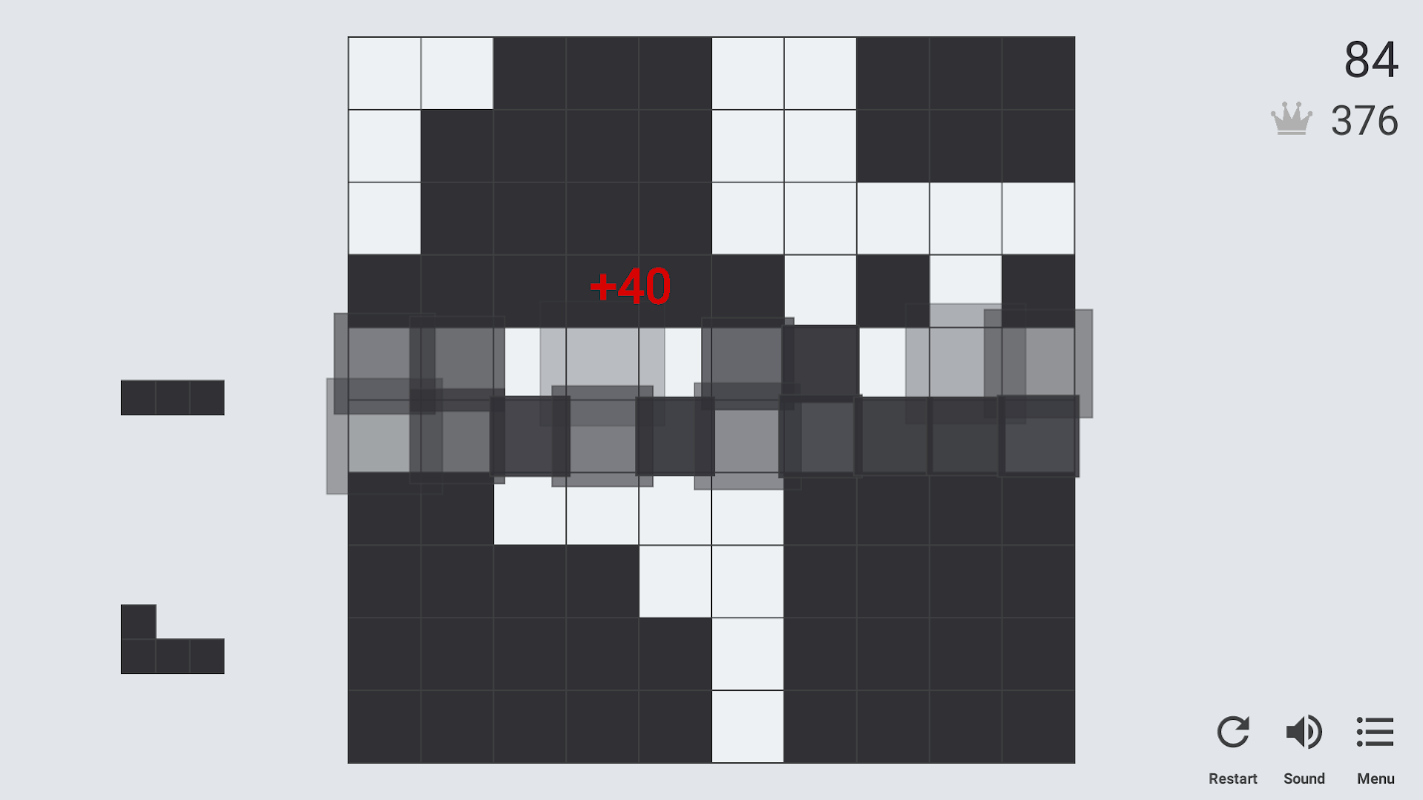 اگر بازیکن نتواند بلوک ها را قرار دهد، بازی به پایان می رسد و در نتیجه بازی تمام می شود.