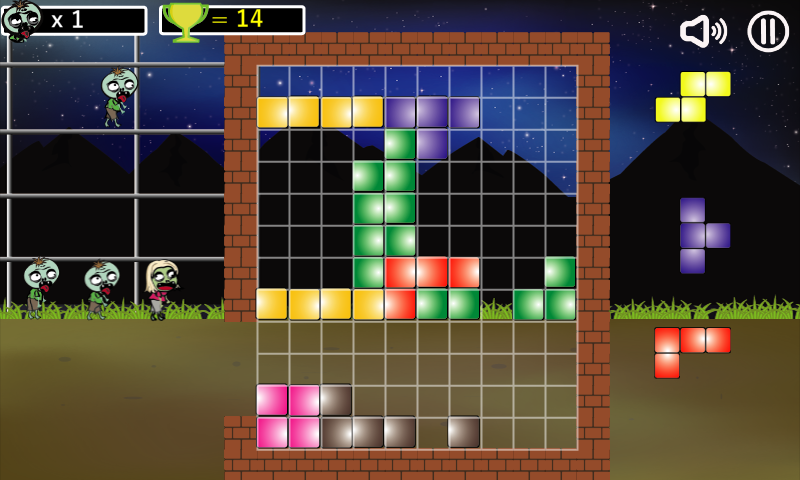 کشیدن بلوک و با پر کردن فضا بر روی نقشه. ایجاد خطوط کامل بر روی شبکه به صورت افقی برای کشتن زامبی.