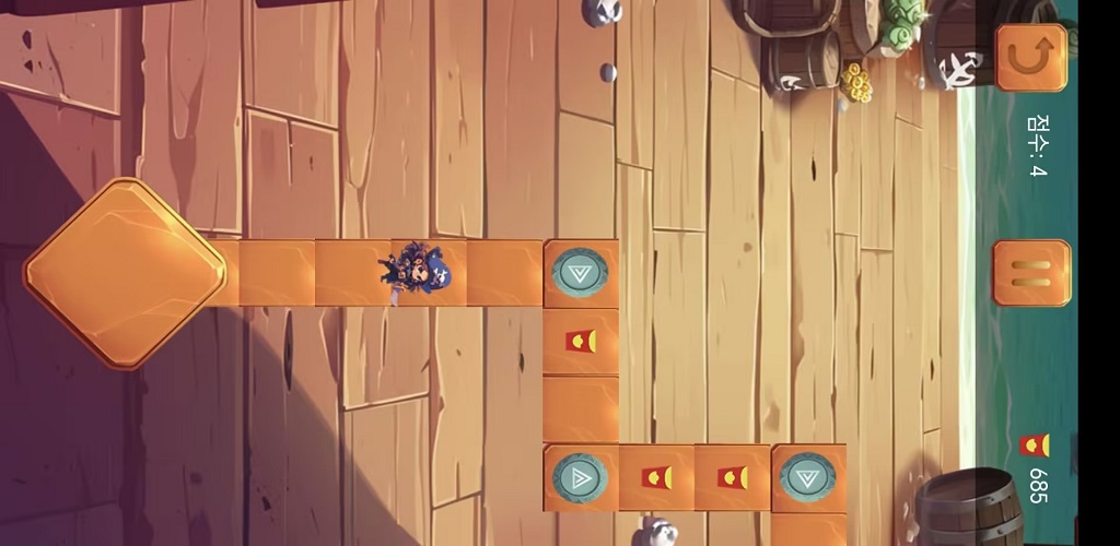 Control the character, follow the arrows in the block, click accurately, control the character's movement direction, prevent falling into traps, and earn more coins