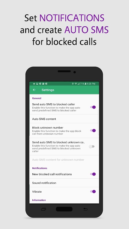 ✔️ Send auto SMS to blocked callers (to all or only contacts or only unknown numbers)