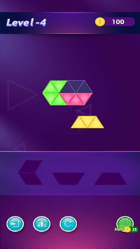 Blocks Triangle یک بازی پازل گاه به گاه است که شما را ملزم می کند که از نوگین خود استفاده کنید! این یک بازی پازلی است که در پس زمینه آبی و بنفش با کاشی های رنگارنگ تنظیم شده است که می توانید آن را به طرح سفید بکشید. هدف شما پر کردن کامل طرح سفید با کاشی های موجود است. هر سطح شکل و چالش جدیدی را برای شما آماده می کند تا آن را حل کنید. برخی از آنها خطوط، کاشی ها و قطعات بیشتری برای قرار دادن خواهند داشت. 50 سطح از پازل برای شما وجود دارد که می توانید بازی کنید و بفهمید. در حالی که شما باید از مغز خود استفاده کنید، این هنوز یک بازی آرام بخش است و هیچ تایمر برای استرس شما وجود ندارد. با هر بازی، سکه هایی را برنده شوید که می توانید از آنها برای باز کردن نکاتی استفاده کنید تا به شما در حل سطوح دشوارتر کمک کند. نماد تابلوی امتیازات را انتخاب کنید تا ببینید در مقابل سایر بازیکنان مثلث بلوک چه رتبهای دارید. فقط تلفن خود را بیرون بیاورید یا به رایانه خود بروید تا این بازی فکری را انجام دهید.