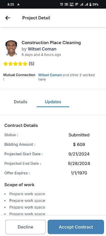 با استفاده از شبکه BlueCaller، شما ارجاعاتی را دریافت می کنید و می توانید به راحتی اطلاعات تایید شده را بررسی کنید و اطمینان حاصل کنید که کارشناسان قابل اعتمادی برای پروژه های خود پیدا می کنید. به سادگی پروژه خود را در بازار پست کنید و تا زمانی که پیشنهادات را دریافت می کنید، عقب بنشینید. برای اطمینان از صحت تخمین قبل از خرید، می توانید با پیشنهاد دهندگان خود چت یا ملاقات کنید. وقتی آماده خرید شدید، 5 درصد سپرده پرداخت کنید و از طریق اپلیکیشن با پیمانکار خود قرارداد امضا کنید. با گزارش های پیشرفت در جریان باشید. ما فقط 95% نهایی پروژه را پس از تکمیل آن می پذیریم تا رضایت شما را جلب کند.
