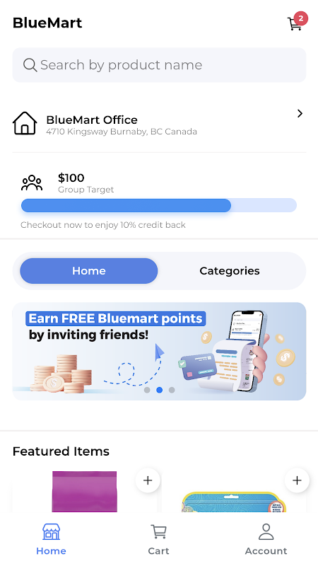 BlueMart، یک پلت فرم خرید و تحویل آنلاین که برای کاربران BlueBox طراحی شده است.