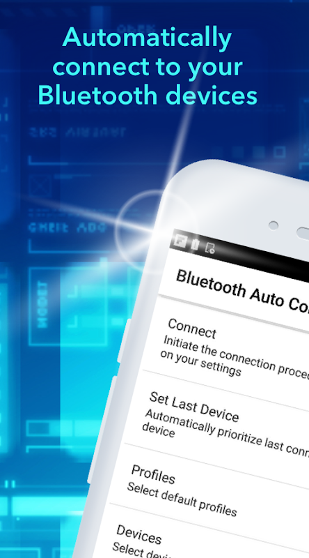 Bluetooth Auto Connect is a solution to your bluetooth connection problems. It automatically tries to connect to your Bluetooth devices when Bluetooth has been turned on or when your device screen goes on.