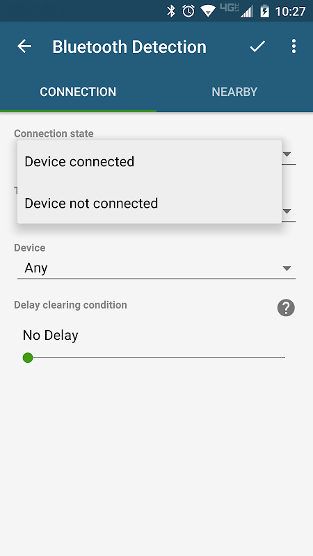 Note for Tasker Users: Once installed, you can find Bluetooth Detection by going to Profiles, and adding a "State" condition. Within the pop-up that appears, you will see a button labeled "Plugin." Tap that, and you will see "Bluetooth Detection."
