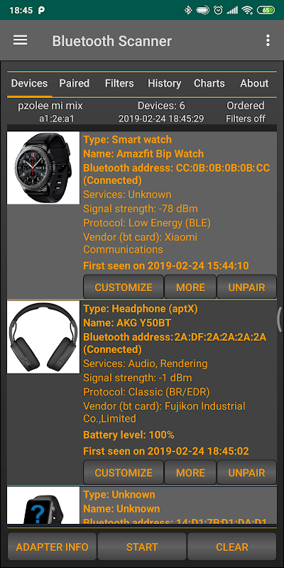 - پخش مجدد هر اسکن در تاریخ، مشاهده هر دستگاه بلوتوث در گذشته
