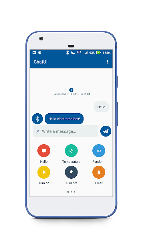شما می توانید داده ها را از تلفن خود را به کنترل مانند آردوینو، PIC، AVR و ARM با این نرم افزار ارسال می کند.