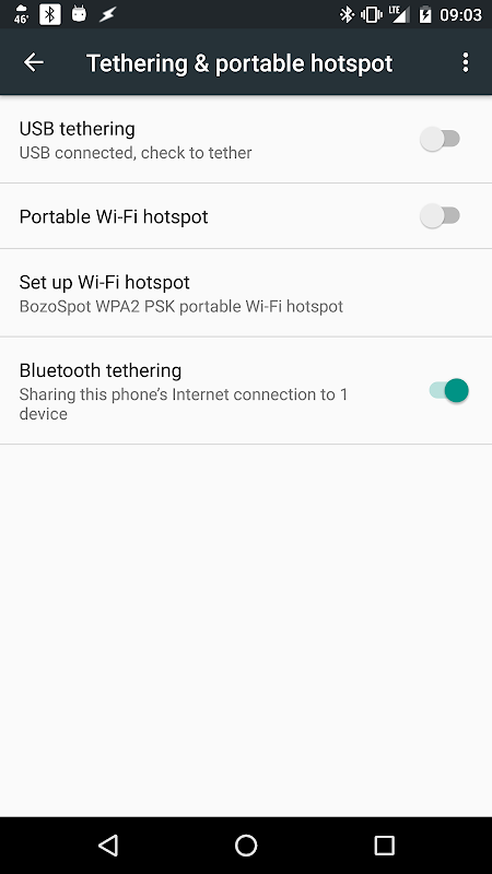 نسخههای قدیمی Bluetooth Tether (Marshmallow