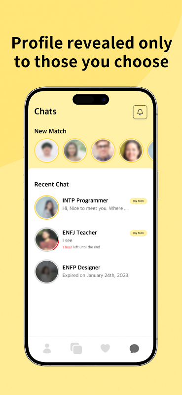 ▶ مرحله ۳: آشکار شدن - آیا میتواند سرنوشت باشد؟ وقتی کدورت از بین رفت، عکس کامل پروفایل یکدیگر را ببینید.
