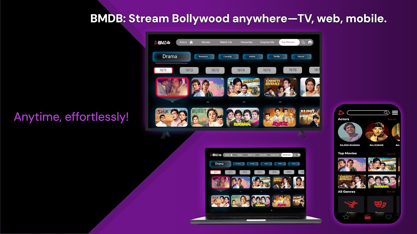 📺 تلویزیون هوشمند و موبایل بهینه شده – برای Android TV، Apple TV، Samsung Tizen، LG webOS، و Fire TV طراحی شده است، بنابراین میتوانید فیلمهای بالیوود را بدون زحمت در صفحه بزرگ خود مرور و تماشا کنید!