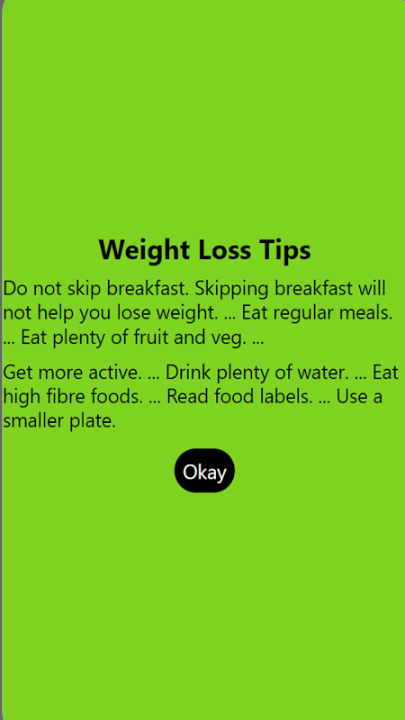 این برنامه به شما کمک می کند تا نشان دهید که آیا کم وزن، سالم، اضافه وزن و چاق هستید یا خیر. برای استفاده از این اپلیکیشن باید وزن خود را بر حسب کیلوگرم و قد را بر حسب متر اضافه کنید. همچنین نکاتی در مورد چگونگی افزایش و کاهش وزن به شما می دهد.