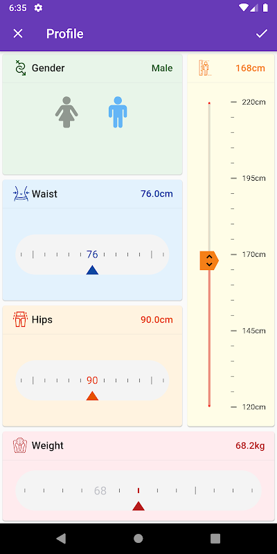 ⭐ خودکار - برنامه بهترین مقدار شما را برای هر یک از معیارهای فوق بر اساس مقادیر مرجع قد، جنسیت، BMI، WHR و WHtR محاسبه می کند.