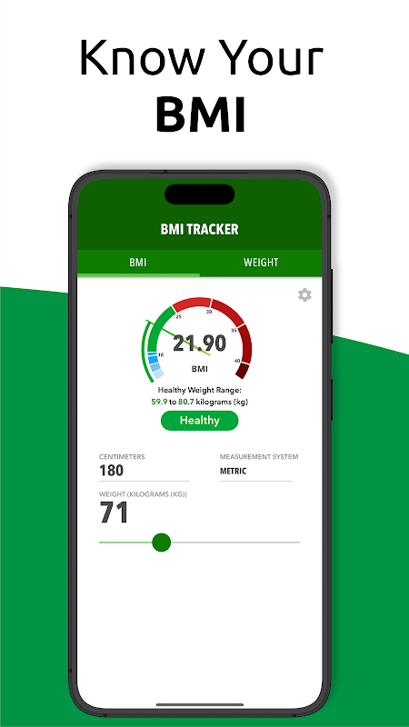- سنج متحرک و تعاملی که در زمان تنظیم وزن خود به روز می شود و مشاهده BMI فعلی شما را آسان می کند.