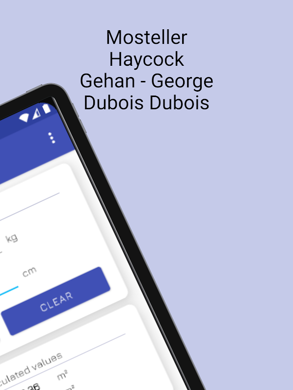 این برنامه فقط محاسبه چهار فرمول را برای بدست آوردن مقدار سطح بدن BSA فراهم می کند. این داده های دیگر مربوط به نسخه های پزشکی از هر نوع را نشان نمی دهد. برای کسب اطلاعات بیشتر در مورد استفاده صحیح از داده های به دست آمده ، با یک متخصص مشورت کنید.