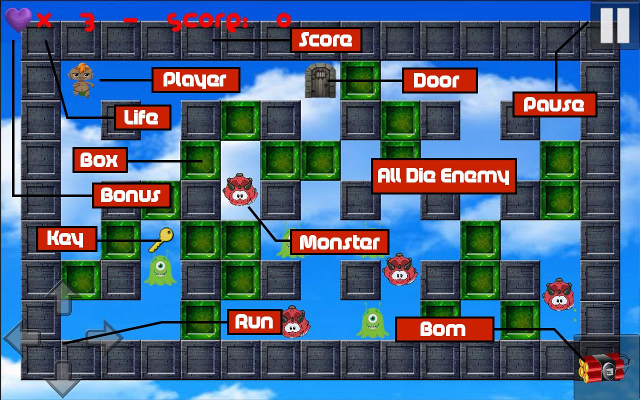 Bomber Game is an interesting game and will surely be what you are looking for. Your mission is to search key to unlock the door, enter in to the door to go to the next level, kill all enemies, and complete all the levels in challenge mode!