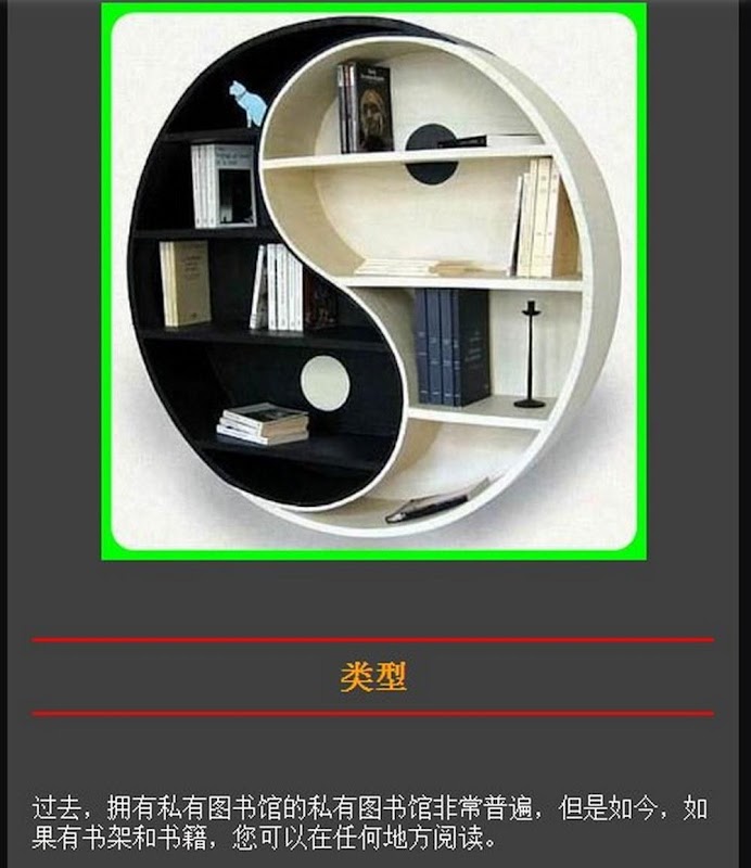 این برنامه شامل تصاویر از طراحی قفسه کتاب، بسیاری از تصویر طراحی قفسه کتاب نمایش داده شده در این برنامه وجود دارد. این نرم افزار به شما در تعیین طراحی شما می خواهید با توجه به سلیقه شما کمک خواهد کرد."