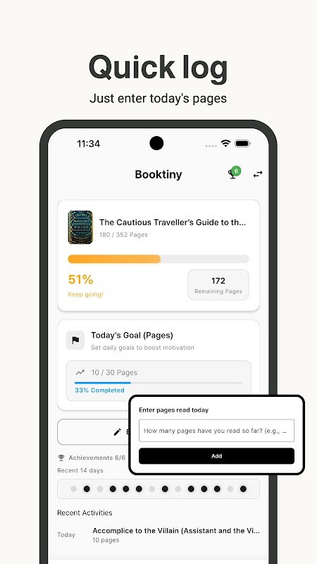 1. ضبط فوق العاده آسان: به سادگی صفحاتی را که امروز می خوانید وارد کنید و پیشرفت شما به طور خودکار محاسبه می شود.